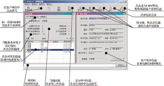 | 拿起電話時問:"您是哪位?",邊通話,邊查找客戶的資料 | 電話振鈴的同時,座席電腦屏幕自動彈出客戶信息,并可添加客戶的定貨或服務信息 |