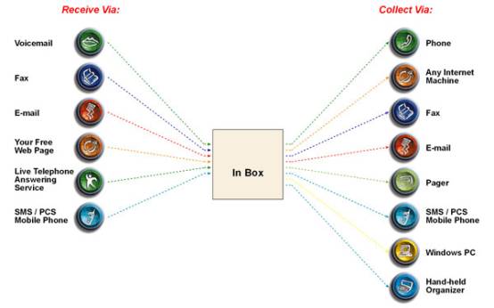 Ø 由固定/移動(dòng)電話運(yùn)營(yíng)商、ISPs 以及ASPs提供服務(wù)。服務(wù)包括單一信息通知到完全統(tǒng)一信息。用戶可將其所有類型的信息存儲(chǔ)在一個(gè)信箱中并且通過電話或網(wǎng)絡(luò)瀏覽器獲取。
