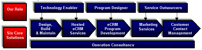 PCCW Contact Center Factsheet 電訊盈科(PCCW)客戶聯(lián)系客戶服務中心-您在動態(tài)客戶關(guān)系管理方面的合作伙伴 電訊盈科作為亞洲領(lǐng)先的資訊科技及通訊企業(yè),其客戶聯(lián)系中心也是亞洲首要的客戶關(guān)系管理方案及服務供貨商。通過整合與客戶聯(lián)系的多種渠道,我們將為您提供卓越的客戶關(guān)系管理增值服務,最大程度地提升您的客戶滿意度,并使您有效把握從每次與顧客聯(lián)系過程中所產(chǎn)生的商機。電訊盈科是亞洲領(lǐng)先的資訊科技及通訊企業(yè),旗下的客戶服務中心亦是亞洲首要的客戶關(guān)系管理方案及服務供應商。通過整合與客戶聯(lián)系的多種渠道,我們公司將為您提供卓越的客戶關(guān)系管理增值服務,最大程度地提升您的客戶滿意度,并使您有效把握每次與顧客聯(lián)系過程中所產(chǎn)生的商機。 依托在客戶關(guān)系管理領(lǐng)域積累的豐富經(jīng)驗,我們可以有效管理顧客服務的每一個階段?傮w而言,我們的服務可以劃分為六大類:依托在客戶關(guān)系管理領(lǐng)域積累的豐富經(jīng)驗,我們公司可以為您有效管理顧客服務的每一個階段?傮w而言,我們的服務可以劃分為六大類: