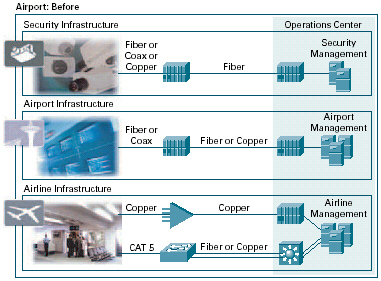 。。由于預(yù)算不斷波動(dòng)、物理空間有限,且已對網(wǎng)絡(luò)基礎(chǔ)設(shè)施進(jìn)行了投資,當(dāng)前的機(jī)場和航空公司無法承受巨大的商業(yè)風(fēng)險(xiǎn)。而由分立IT網(wǎng)絡(luò)元素組成的基礎(chǔ)設(shè)施極大地限制了改進(jìn)的能力,帶來了功能化信息孤井、重復(fù)應(yīng)用、專用航空公司系統(tǒng)、不同的網(wǎng)絡(luò)協(xié)議,以及昂貴、復(fù)雜的網(wǎng)絡(luò)設(shè)計(jì)和部署。