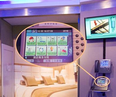 沐浴著窗外透進(jìn)來的陽光,小陶想起昨晚入住酒店時(shí)曾用IP電話設(shè)定好了自己喜愛的電視財(cái)經(jīng)頻道快捷開啟方式,而現(xiàn)在正好是早間財(cái)經(jīng)新聞的時(shí)間,小陶用IP電話觸摸屏上的按鍵打開電視,新聞剛剛開始。小陶用IP電話的觸摸屏界面預(yù)定了早餐,并選擇了要求30分鐘后送到,然后指定了上午10點(diǎn)后再讓酒店服務(wù)員對(duì)自己的房間進(jìn)行清掃。這一切都辦理妥當(dāng)后,小陶就踏踏實(shí)實(shí)躺在床上看起了新聞。而她并不知道,一個(gè)酒店樓層的客房服務(wù)員剛剛用別在腰間的無線終端收到了小陶確認(rèn)的送餐和房間清掃需求信息。