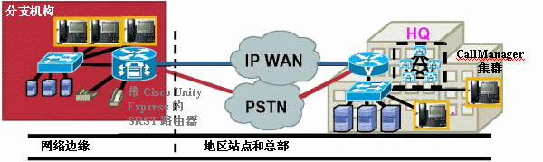 思科集成多業(yè)務(wù)平臺(tái)是企業(yè)分支機(jī)構(gòu)和商業(yè)機(jī)構(gòu)部署帶SRST的IP電話、用于故障恢復(fù)呼叫處理的基礎(chǔ)。在此部署中,語(yǔ)音留言和自動(dòng)接聽服務(wù)可在思科集成多業(yè)務(wù)路由器中通過Cisco Unity Express提供,或使用Cisco Unity軟件集中提供。