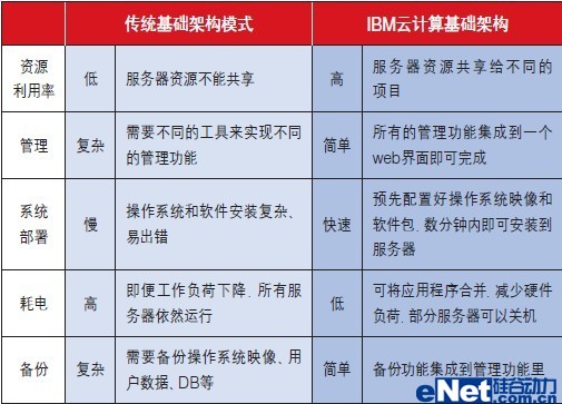 傳統(tǒng)IDC主要提供帶寬租用和機位租用服務,服務種類單一,競爭激烈。云計算IDC借助IBM云計算管理平臺,可以提供更多種類的增值服務,并提升利潤率。增值服務包括: 云計算虛擬基礎架構服務、SaaS(軟件即服務)軟件訂購服務等等。云計算IDC同時能夠簡化IDC的管理,并迅速響應客戶的需求。