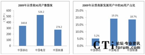 截止2009年12月底,三大運(yùn)營(yíng)商3G用戶數(shù)累計(jì)達(dá)到約1141萬(wàn)戶,在移動(dòng)通信用戶中的占比為1.5%。在三大運(yùn)營(yíng)商中,中國(guó)電信3G用戶數(shù)最大,達(dá)到526.2萬(wàn);中國(guó)電信和中國(guó)聯(lián)通的新發(fā)展用戶中3G用戶相對(duì)較高,均在19%左右;中國(guó)移動(dòng)在3G用戶發(fā)展方面,暫時(shí)落后。