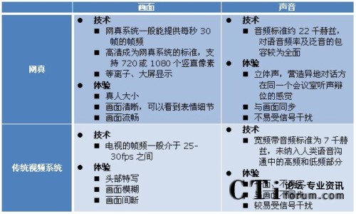 表1 網(wǎng)真與傳統(tǒng)視頻會(huì)議系統(tǒng)在體驗(yàn)質(zhì)量上的區(qū)別