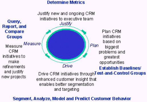 我們必須以循環(huán)的方式對CRM進行研究,這樣我們就可以改進我們的行為,評價我們的做法,繼續(xù)執(zhí)行CRM流程。在評價以及計劃階段,與已經(jīng)在測試控制小組中建立的標(biāo)準(zhǔn)相比,F(xiàn)SPs必須使用已經(jīng)經(jīng)過調(diào)整而不是先前就已經(jīng)決定了的標(biāo)準(zhǔn)。這樣,決策層(比方說產(chǎn)品,渠道、部門或者地區(qū)經(jīng)理,營銷經(jīng)理以及生產(chǎn)主任)就可以理解客戶行為,指導(dǎo)商業(yè)策略,優(yōu)化管理資源,改善銷售渠道,提高產(chǎn)品質(zhì)量以及增加客戶利益。只有經(jīng)過查詢,做報告,小組進行比較才能夠有效開展這項活動。