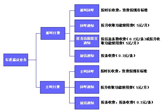 東進固話漏話業(yè)務(wù)根據(jù)其功能劃分設(shè)計成若干業(yè)務(wù),各業(yè)務(wù)既可獨立運營又可組合運營。