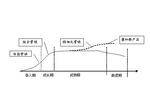 漏話業(yè)務(wù)是對現(xiàn)有基礎(chǔ)電信業(yè)務(wù)的延伸和補充,是建立在基礎(chǔ)通話服務(wù)基礎(chǔ)上的功能型增值業(yè)務(wù),在業(yè)務(wù)推廣中,應(yīng)根據(jù)業(yè)務(wù)的不同的發(fā)展階段,分別在業(yè)務(wù)的導(dǎo)入期、成長期、發(fā)展期和衰退期采取不同的營銷手段和措施,如下圖所示。
