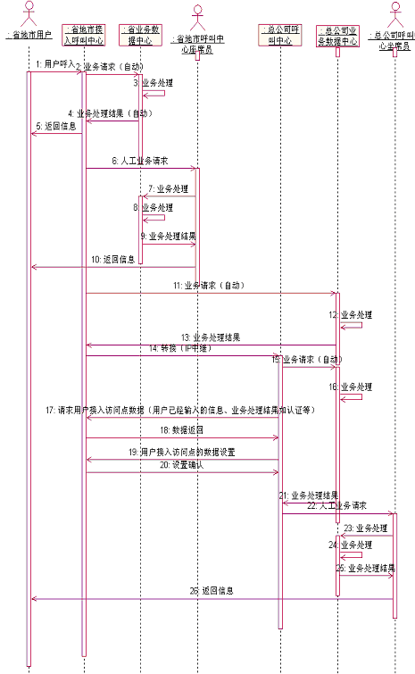 本地用戶請(qǐng)求本地信息或向本地話務(wù)員咨詢時(shí),由本地呼叫中心直接處理,如果請(qǐng)求其他節(jié)點(diǎn)的服務(wù),由總公司的呼叫中心實(shí)現(xiàn)集中控制,并請(qǐng)求用戶在呼叫接入點(diǎn)已經(jīng)輸入的信息和業(yè)務(wù)處理結(jié)果等,將其轉(zhuǎn)入相關(guān)處理人員或應(yīng)用程序,語(yǔ)音和數(shù)據(jù)的轉(zhuǎn)接同步完成,保證用戶獲得最個(gè)性化的服務(wù)。