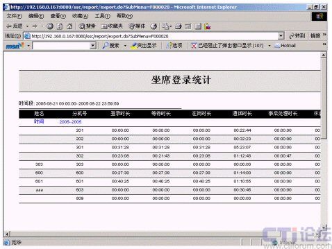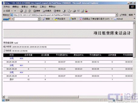 2.項(xiàng)目組外撥分析:包括手動外呼話費(fèi)明細(xì)表、手動外呼話費(fèi)總計(jì)表、項(xiàng)目組手動外呼日報告、項(xiàng)目組自動外呼日報告、項(xiàng)目組座席外撥總計(jì)、自動外呼話費(fèi)明細(xì)表、自動外呼話費(fèi)總計(jì)表、座席外呼日報告等。該統(tǒng)計(jì)報表分別提供了針對手動和自動的外撥話務(wù)、話費(fèi)統(tǒng)計(jì),分類明確,統(tǒng)計(jì)方便。