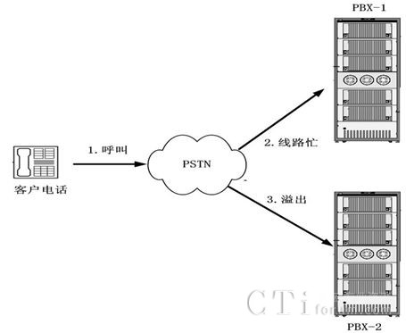 多套聯(lián)絡(luò)中心也可以通過PBX語音對接得方式實(shí)現(xiàn)呼叫互轉(zhuǎn),其中最典型的應(yīng)用就是溢出呼叫轉(zhuǎn)接,通過交換機(jī)轉(zhuǎn)接的方式,實(shí)現(xiàn)服務(wù)溢出處理。