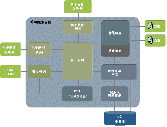 交互(輔助)服務(wù)器是客戶服務(wù)系統(tǒng)體系結(jié)構(gòu)的主要組件,控制所有的客戶交互以及它們?cè)谧黹g的分配。其主要功能是: