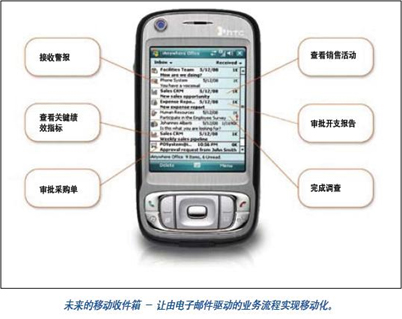 目前,無線電子郵件已經(jīng)成為最受移動設備用戶歡迎的應用:它是一種簡單而高效的方法,工作人員可以隨時隨地保持聯(lián)系,進行溝通。然而,要讓工作人員在戶外保持像使用臺式計算機那樣的效率,無線電子郵件僅僅邁出了第一步。全天候的移動執(zhí)行力要求即使員工不在辦公室,也必須保證業(yè)務的連續(xù)性。由電子郵件驅(qū)動的業(yè)務流程,例如采購單、銷售訂單審批或租用申請都需要迅捷的行動,但目前這些流程只能借助臺式或便攜式計算機來完成。