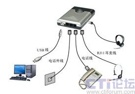 “話務(wù)通”設(shè)計(jì)新穎,接口包括電話線路接口、電話機(jī)接口、耳機(jī)接口和USB通信接口。配置立體聲揚(yáng)聲器和環(huán)型提示燈,提供聲光提示!霸拕(wù)通”能夠提供IP網(wǎng)絡(luò)電話,自動(dòng)應(yīng)答,自動(dòng)外撥,來(lái)電彈屏,語(yǔ)音錄放,語(yǔ)音留言等功能。