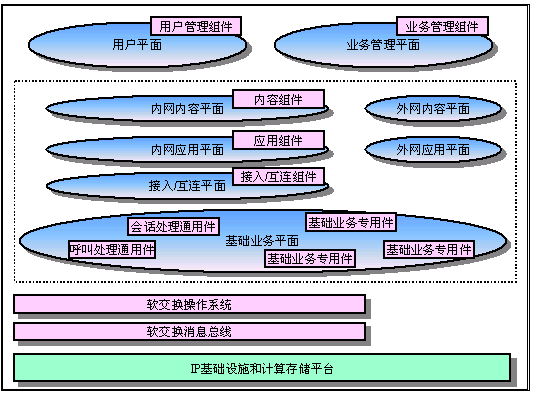 從結構上看,業(yè)務驅動的軟交換平臺是一個復雜的多域多層組件平臺。一個電信業(yè)務的實現是對平臺上的組件的組裝過程。業(yè)務驅動的軟交換平臺上的組件分為用戶平面、基礎業(yè)務平面、接入/互連/移動控制平面、應用平面、內容平面和業(yè)務管理平面。用戶平面的組件負責維護用戶的注冊信息、位置信息、狀態(tài)信息、業(yè)務信息和業(yè)務使用信息;A業(yè)務平面的組件分為三大類型:電路基礎業(yè)務、包交換基礎業(yè)務和多媒體交換基礎業(yè)務。每個基礎業(yè)務分成傳輸層、承載層、媒體層、呼叫處理層和業(yè)務層,其中的控制包括了對各層功能的控制協(xié)議和層間交互的控制協(xié)議。接入/互連/移動控制平面中包含了對各種接入網絡的控制、對互聯(lián)網絡的控制和對移動性的控制協(xié)議,也分成傳輸層、承載層、媒體層、呼叫處理層和業(yè)務層的控制組件。應用平面的組件分為三種類型,基于傳統(tǒng)智能網(IN,