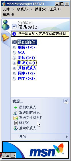 籠統(tǒng)地說,如果你使用過OICQ而沒有使用過MSN Message,那么MSN Message就是與OICQ類似的工具;而它的功能更加強(qiáng)大,界面更加友好,設(shè)置也更加人性化;并且你只需要申請1個(gè)"hotmail"或者"MSN"的帳號(hào)(免費(fèi)的)就可以免費(fèi)使用它。