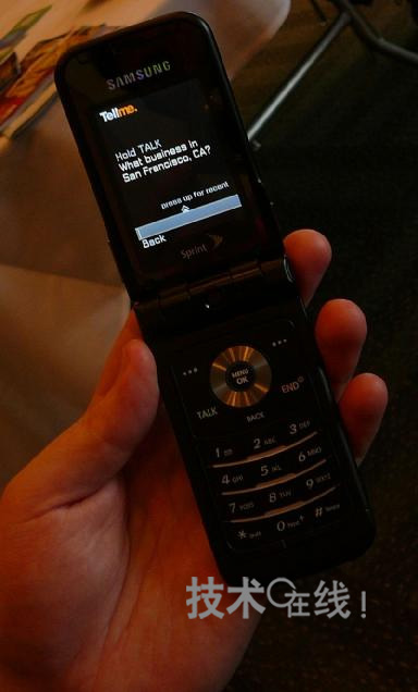 Tellme by Mobile服務現(xiàn)在為β版。首先,在手機上運行的、約200KB的J2ME支持客戶端軟件錄制用戶說出的檢索關鍵詞。然后,將錄制好的約2~3KB的語音數據轉發(fā)至Tellme運營的服務器。接著,服務器端便會識別來自語音文件的檢索關鍵詞,實際執(zhí)行檢索處理,并將結果以文本數據的形式返給客戶端。另外,還可將檢索結果與在線地圖等信息聯(lián)動。Tellme稱,利用了可獲得適于小屏幕手機的檢索結果的算法。