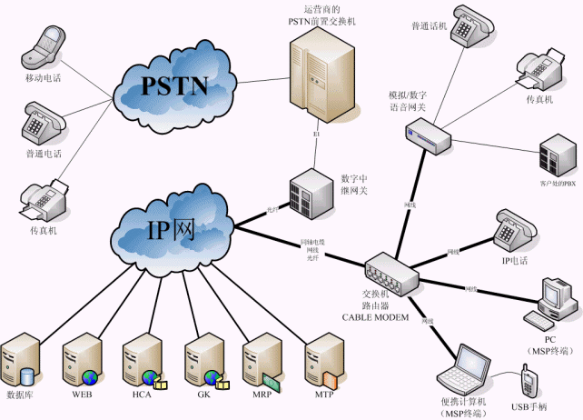 上海偉功IP電話軟交換系統(tǒng)產(chǎn)品分為三大部分:軟交換平臺,數(shù)字中繼語音網(wǎng)關(guān)(用于與PSTN對接,與傳統(tǒng)PSTN互聯(lián)互通,如純粹IP電話網(wǎng)內(nèi)通話,可以省略),媒體語音網(wǎng)關(guān)(MSP)。