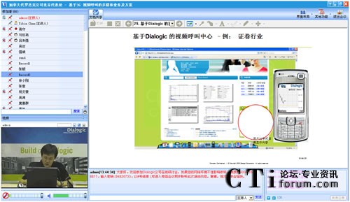 作為最早將3G語(yǔ)音視頻技術(shù)引入中國(guó)的世界級(jí)技術(shù)提供商,Dialogic在語(yǔ)音應(yīng)用和3G視頻一直具有領(lǐng)先競(jìng)爭(zhēng)力。在此次“基于3G視頻呼叫的多媒體業(yè)務(wù)及方案”網(wǎng)絡(luò)研討會(huì)上,Dialogic中國(guó)區(qū)技術(shù)總監(jiān)陳益斌,以音視頻的在線直播方式,親身向與會(huì)觀眾講解Dialogic基于3G視頻呼叫的業(yè)務(wù),以及與3G數(shù)據(jù)業(yè)務(wù)的區(qū)別等前瞻3G視頻技術(shù)。