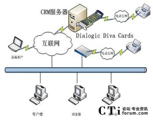 圖:與Dialogic Diva 卡結(jié)合的CRM系統(tǒng)結(jié)構(gòu)圖