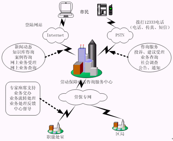 合肥市12333電話咨詢服務(wù)系統(tǒng)的建設(shè),使勞動(dòng)和社會(huì)保障業(yè)務(wù)延伸到市民、企業(yè)的身邊。克服地域和時(shí)間的限制,實(shí)現(xiàn)了每天24小時(shí)不間斷地隨時(shí)提供服務(wù)。該系統(tǒng)的建設(shè)將原本分散在各部門的對(duì)外服務(wù)業(yè)務(wù)內(nèi)容,集中在一個(gè)統(tǒng)一的對(duì)外服務(wù)"窗口",并與就業(yè)、失業(yè)、養(yǎng)老、醫(yī)療、生育及勞動(dòng)關(guān)系等管理系統(tǒng)建立接口,實(shí)現(xiàn)資源共享,為勞動(dòng)者提供包括電話、傳真、電子郵件、因特網(wǎng)等多種方式熱線咨詢服務(wù),從而架起勞動(dòng)者與勞動(dòng)部門之間密切聯(lián)系的橋梁,使廣大勞動(dòng)群眾的權(quán)益真正落到了實(shí)處。樹立勞動(dòng)和社會(huì)保障行業(yè)系統(tǒng)的良好服務(wù)形象。推動(dòng)勞動(dòng)保障局管理和服務(wù)的社會(huì)化,實(shí)行全面的標(biāo)準(zhǔn)化、規(guī)范化、制度化和網(wǎng)絡(luò)化的完善的服務(wù)。