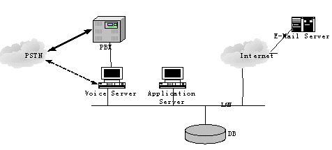 注: 本系統(tǒng)結(jié)構(gòu)靈活, TTS, Application Server 和語(yǔ)音識(shí)別引擎可以根據(jù)系統(tǒng)的大小分別分布在幾臺(tái)服務(wù)器上, 或者集中在一臺(tái)服務(wù)器上.