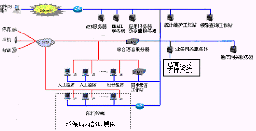 該系統(tǒng)利用環(huán)保局現(xiàn)有的信息網(wǎng)絡(luò)資源,將自動(dòng)語(yǔ)音查詢(xún)、人工服務(wù)、信息資料處理緊密結(jié)合起來(lái),為人民群眾提供全天候24小時(shí)不間斷的優(yōu)質(zhì)服務(wù)。