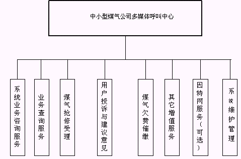 客戶利用電話、手機(jī)等撥打某一特服號(hào)碼(如9xxxx)進(jìn)入中小型煤氣公司多媒體呼叫中心系統(tǒng),本系統(tǒng)依托煤氣公司各類業(yè)務(wù)技術(shù)支持系統(tǒng)和網(wǎng)絡(luò)系統(tǒng),通過(guò)人工受理或自動(dòng)語(yǔ)音服務(wù)等方式全天24小時(shí)不間斷地為客戶提供各種服務(wù)。