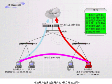 4、非法用戶(hù)盜用合法用戶(hù)的MAC地址上網(wǎng)