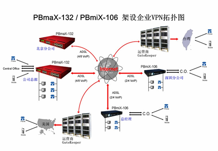 對于具有多個分支機(jī)構(gòu)的公司,PBmaX/PBmiX系列IP-PBX能夠通過內(nèi)建的VoIP通道將各分支機(jī)構(gòu)連接起來。使撥打遠(yuǎn)程分機(jī)如同撥打本地分機(jī) 一樣簡單,且無需支付任何長話費(fèi)用。