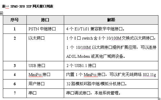 5.SPAS-320 VOIP網(wǎng)關(guān)技術(shù)指標(biāo)