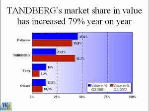 TANDBERG視頻會議終端產(chǎn)品是挪威泰德集團(tuán)(TANDBERG Group)下屬視訊公司(TANDBERG Telecom)的定位于高端市場的視頻會議系統(tǒng)終端產(chǎn)品,亦就是說,TANDBERG終端是挪威泰德公司專為出錢要買最好終端的客戶們設(shè)計(jì)、生產(chǎn)和制造的。TANDBERG未在挪威以外設(shè)立任何分廠,每臺設(shè)備必須經(jīng)過挪威工程師嚴(yán)格檢驗(yàn),從而保證每臺設(shè)備的最高可靠性(當(dāng)然海關(guān)進(jìn)口成本要高一些了)。TANDBERG全系列產(chǎn)品均采用泰德自己研發(fā)的專用視頻芯片,而不是采用第三方芯片加以集成,從而保證了從高端T8000至低端T500的所有產(chǎn)品性能表現(xiàn)均很優(yōu)秀。