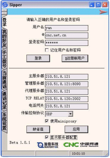 在主界面上選擇"注冊(cè)新用戶",這時(shí)會(huì)出現(xiàn)網(wǎng)通的注冊(cè)界面,選擇"開始注冊(cè)",然后將各項(xiàng)用戶信息填寫清楚后,創(chuàng)建用戶,成功后即可回到sipper界面登陸。