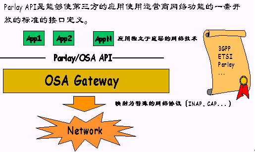因此我們正在致力于建設適應于目前SCP系統(tǒng)的CIN Parlay Gateway產(chǎn)品:第一步,在應用層面依舊可以采用Web的方式進行業(yè)務規(guī)劃和描述,在AS底層調(diào)用ParlayAPI,Gateway的作用是將Parlay