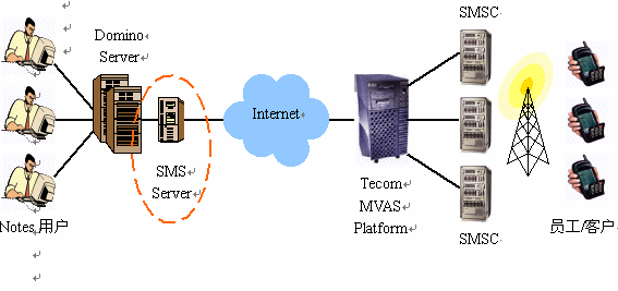 SMS Server,并根據(jù)實際情況安裝運行在專用硬件服務(wù)器上,或與Domino共享硬件服務(wù)器。
