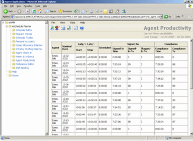 為了能夠最大限度利用呼叫中心的勞動(dòng)力資源,必須確保呼叫中心的坐席員的勞動(dòng)生產(chǎn)率始終保持最高水平。Aspect eWorkforce管理軟件的績效模塊可以幫助您了解坐席員的歷史和實(shí)時(shí)工作表現(xiàn),從而幫助他們改進(jìn)和提高績效成績。