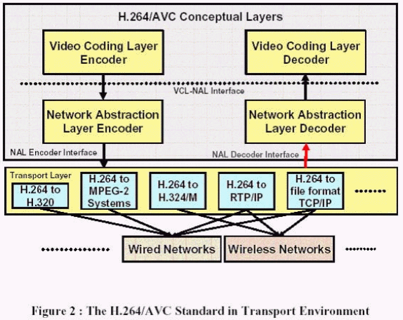 根據(jù)圖2,H.264/ AVC在不同的概念層上區(qū)分開來,視頻編碼層(VCL)和網(wǎng)絡(luò)抽象層(NAL)。VCL和NAL都是H.264/ AVC標(biāo)準(zhǔn)的一部份。VCL對(duì)視頻編碼信號(hào)進(jìn)行了有效的說明。H.264/AVC的NAL定義了視頻編碼和外面世界之間的接口。它通過NAL單元來支持大部分基于包的網(wǎng)絡(luò)。在NAL解碼接口,它假設(shè)NAL單元已經(jīng)通過解碼命令被發(fā)送,數(shù)據(jù)包要么被正確接受,要么丟失,如果有效載荷里包括了錯(cuò)誤的數(shù)據(jù)流,NAL單元的頭就會(huì)產(chǎn)生一個(gè)錯(cuò)誤的標(biāo)記。由于標(biāo)記可以用于不同的目的,因此它并不作為標(biāo)準(zhǔn)的一部分。然而,它提供一個(gè)在整個(gè)網(wǎng)絡(luò)里提供錯(cuò)誤指示信號(hào)的方法。此外,接口規(guī)范要求標(biāo)準(zhǔn)化主體有責(zé)任對(duì)不同傳送協(xié)議進(jìn)行描述。NAL單元在不同傳輸系統(tǒng)的精確傳輸和加密,例如H.320,MPEG-2系統(tǒng)和RTP/IP,也同樣在h.264/AVC標(biāo)準(zhǔn)化的范疇以外。在標(biāo)準(zhǔn)里面正式定義了NAL解碼接口,然而,VCL和NAL之間的接口只是概念上的定義,主要是幫助描述和分開VCL和NAL的任務(wù)。