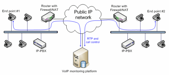 VoIP應(yīng)用的質(zhì)量監(jiān)控分為主動式和被動式兩種實現(xiàn)方式。主動式的系統(tǒng)能產(chǎn)生呼叫,而被動式的系統(tǒng)只是監(jiān)測進行中的呼叫。兩種方法各有優(yōu)勢。VoIP監(jiān)控方案的架構(gòu)取決于網(wǎng)絡(luò)Edge設(shè)備的類型和結(jié)構(gòu)。有些大型企業(yè)采用的VoIP網(wǎng)絡(luò)配備了一種特殊設(shè)備,叫SBC(Session boarder controller),除了完成類似路由器的功能外,還能完成流量分配、數(shù)據(jù)/語音信號加密以及業(yè)務(wù)質(zhì)量控制等功能。此外,通過過濾和替換數(shù)據(jù)包內(nèi)的、與用戶有關(guān)的特定信息,SBC還能隱藏公司的網(wǎng)絡(luò)拓?fù)浣Y(jié)構(gòu)和用戶信息,不被外部的IP世界所知道。