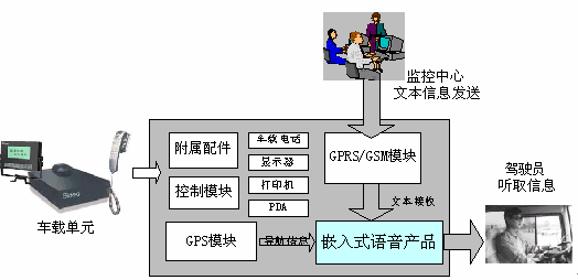 首先,當(dāng)車載GPS單元接收到由監(jiān)控中心發(fā)來的調(diào)度、提醒、叫車等信息時,語音合成會伴隨顯示器上的顯示,同步將文字讀出,轉(zhuǎn)變?yōu)榍逦鲿车脑捯,這樣一方面司機不用特意在駕駛中注意顯示屏的文字內(nèi)容而同樣可以及時獲取信息的內(nèi)容,另一方面也減少了因為分神駕駛而引發(fā)的交通安全隱患。