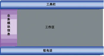 軟電話提供標(biāo)準(zhǔn)的呼叫控制功能,如座席的登錄、注銷等。業(yè)務(wù)模塊信息根據(jù)該座席的技能設(shè)置顯示該座席能夠使用的座席業(yè)務(wù)模塊,工作區(qū)是座席使用業(yè)務(wù)模塊的區(qū)域,業(yè)務(wù)模塊的調(diào)入可以是系統(tǒng)根據(jù)自動服務(wù)傳遞的參數(shù)自動彈出,也可以是座席人員手工選擇相應(yīng)的業(yè)務(wù)操作。同時,業(yè)務(wù)模塊通過標(biāo)準(zhǔn)的接口和軟電話模塊進(jìn)行通信,取得或者設(shè)置系統(tǒng)的呼叫參數(shù)或操作,包括提取系統(tǒng)主被叫號碼、用戶按鍵等。通過工具欄提供系統(tǒng)的菜單、快捷鍵、快捷按鈕的使用。通過這種方式,系統(tǒng)可以隨時增加、修改座席的業(yè)務(wù)模塊,而無須修改整個座席端,有利于系統(tǒng)業(yè)務(wù)的分步實施,大大縮短了系統(tǒng)的整個建設(shè)周期。