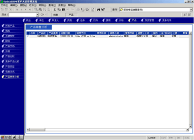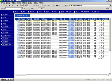 管理人員可能需要對(duì)比產(chǎn)品銷售計(jì)劃與實(shí)際銷售的產(chǎn)品數(shù)量的關(guān)系,也有可能要對(duì)比某款產(chǎn)品與競(jìng)爭(zhēng)產(chǎn)品銷售的情況,這時(shí)候可以利用產(chǎn)品銷售統(tǒng)計(jì)功能。它最大的好處是各項(xiàng)目數(shù)據(jù)普遍關(guān)聯(lián),允許任意組合查詢條件(見(jiàn)圖4,點(diǎn)擊下圖,可彈出更清晰的大圖)