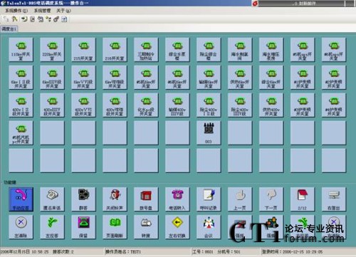 “調(diào)度控制模塊”一般由工控機(jī)、語(yǔ)音接口板和支持最多16個(gè)手柄式話機(jī)的坐席卡組成。調(diào)度臺(tái)電話采用兩套獨(dú)立的通話方式:主話路(頭戴式耳麥,音量可調(diào))和副話路(即手柄),調(diào)度工作通過(guò)觸摸屏(或者鍵盤(pán)鼠標(biāo))相應(yīng)的功能鍵完成。
