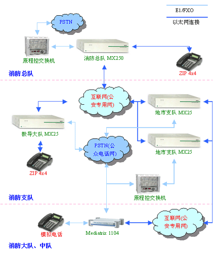 圖3.1 XX省消防系統(tǒng)IP語音通信示意圖一