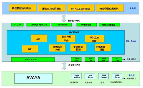 商路通公司采用平臺化、模塊化以及分層的設(shè)計思想,在體系結(jié)構(gòu)上分為通信層、中間層、業(yè)務(wù)層。這樣的體系結(jié)構(gòu),在實現(xiàn)多種硬件設(shè)備、多種媒體支持以及建設(shè)不同規(guī)模、組網(wǎng)方式的呼叫中心應用時體現(xiàn)出了靈活、便捷、平滑過渡等諸多優(yōu)勢。