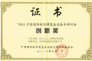 。。到目前為止,我公司已取得突出的業(yè)績和很高的榮譽(yù),獲得國家科技進(jìn)步二等獎一項(xiàng),國家科技進(jìn)步獎三等獎二項(xiàng),國家級新產(chǎn)品、國家重點(diǎn)新產(chǎn)品各一項(xiàng),中科院科技進(jìn)步一等獎一項(xiàng),中科院科技進(jìn)步二等獎二項(xiàng),并有多項(xiàng)獲得中國國際軟件博覽會金獎和創(chuàng)新獎。