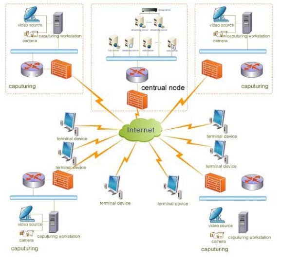 所有的部門的直播系統(tǒng)主要是進(jìn)行部隊演習(xí)、會議等現(xiàn)場的直播,直播信號通過WebLIVE視頻直播采集系統(tǒng)編碼壓縮,通過局域網(wǎng)上傳到中心機(jī)房,實(shí)時發(fā)布。采集同時,將直播的數(shù)字信號存儲為AVI文件,上傳到放置在視頻點(diǎn)播服務(wù)器內(nèi),供其它地區(qū)的部隊指戰(zhàn)員進(jìn)行點(diǎn)播。