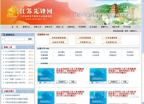 2012初,“江蘇先鋒網(wǎng)”與VIEWGOOD共同建設(shè)下,將原有的系統(tǒng)進(jìn)行二次平滑升級(jí)到高清。用戶可以通過(guò)該網(wǎng),收看720P的高清直播培訓(xùn)。一方面開(kāi)能了“全國(guó)流媒體頻道”,還開(kāi)通了“江蘇視頻頻道”、“江蘇直播課堂”等六大頻道,供黨員學(xué)習(xí)。