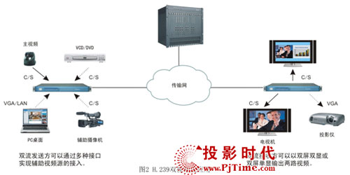 科達(dá)H.239雙視頻流具有非常靈活的輔助視頻輸入和輸出特性。其中,輸入支持VGA、復(fù)合端子、S端子、以太網(wǎng)等多種接口,PC桌面講稿等內(nèi)容可通過VGA輸入發(fā)言會場終端,不方便直接接入的PC桌面可借助LAN通過以太網(wǎng)輸入發(fā)言會場終端,資料碟片(VCD/DVD)、實(shí)物外觀(輔助攝像機(jī))可通過復(fù)合端子、S端子輸入發(fā)言會場終端。雙流輸出支持雙屏雙顯和雙屏單顯,雙屏雙顯時,主視頻和輔助視頻通過兩臺顯示設(shè)備分別輸出,雙屏單顯時,主視頻和輔助視頻以畫中畫或一左一右形式通過單臺顯示設(shè)備輸出。