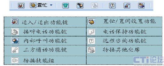 基于業(yè)務(wù)支撐平臺的JTAPI開發(fā)包所開發(fā)的Applet程序,實現(xiàn)座席員所需要的話務(wù)功能,可以和頁面進行交互;軟電話條如下: