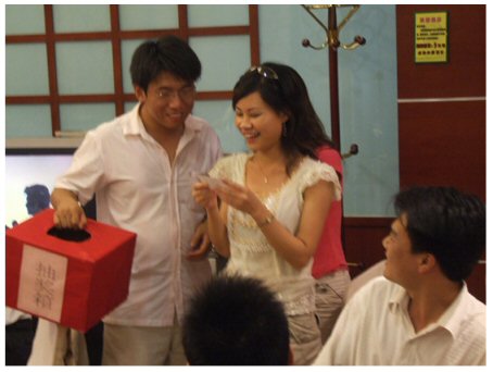 在聚餐接近尾聲的時候開始了激動人心的抽獎活動,本次共產生8個大獎。每個中獎同仁都獻歌一曲,從而使活動的氣氛達到了高潮。